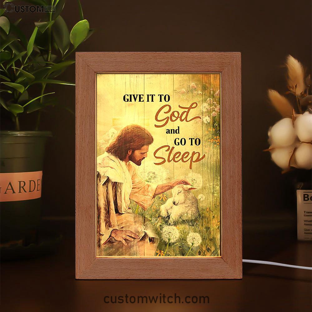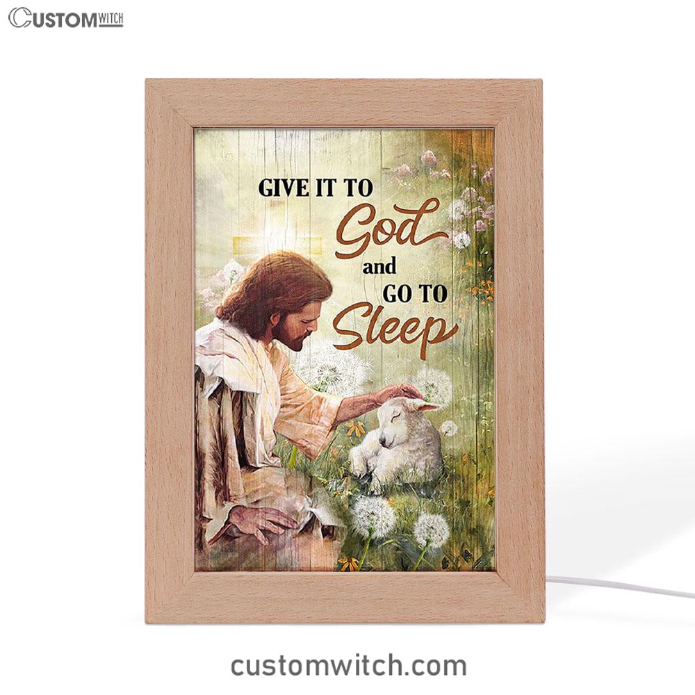 Give It To God And Go To Sleep Frame Lamp - Jesus Baby Lamb Dandelion Field Frame Lamp Art - Christian Night Light