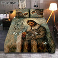 Give It To God And Go To Sleep Jesus Little Cat Butterfly Quilt Bedding Set Bedroom - Christian Quilt Bedding Set Prints - Bible Verse Quilt Bedding Set Art