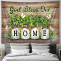 God Bless Our Home Baby Rubber Plant Vase White Butterfly Tapestry Wall Art - Bible Verse Tapestry - Religious Tapestry Wall Hanging