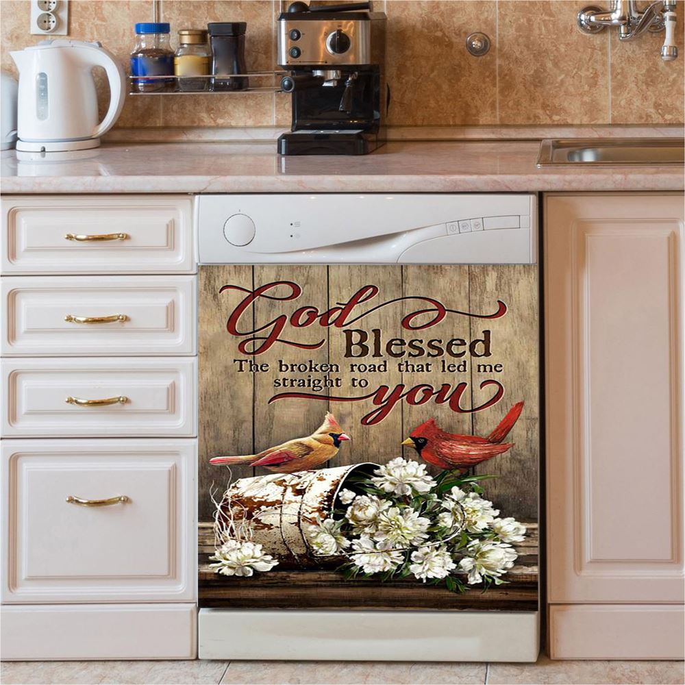 God Blessed The Broken Road Lovely Cardinal Dishwasher Cover, Bible Verse Dishwasher Stickers, Christian Inspirational Kitchen Decor
