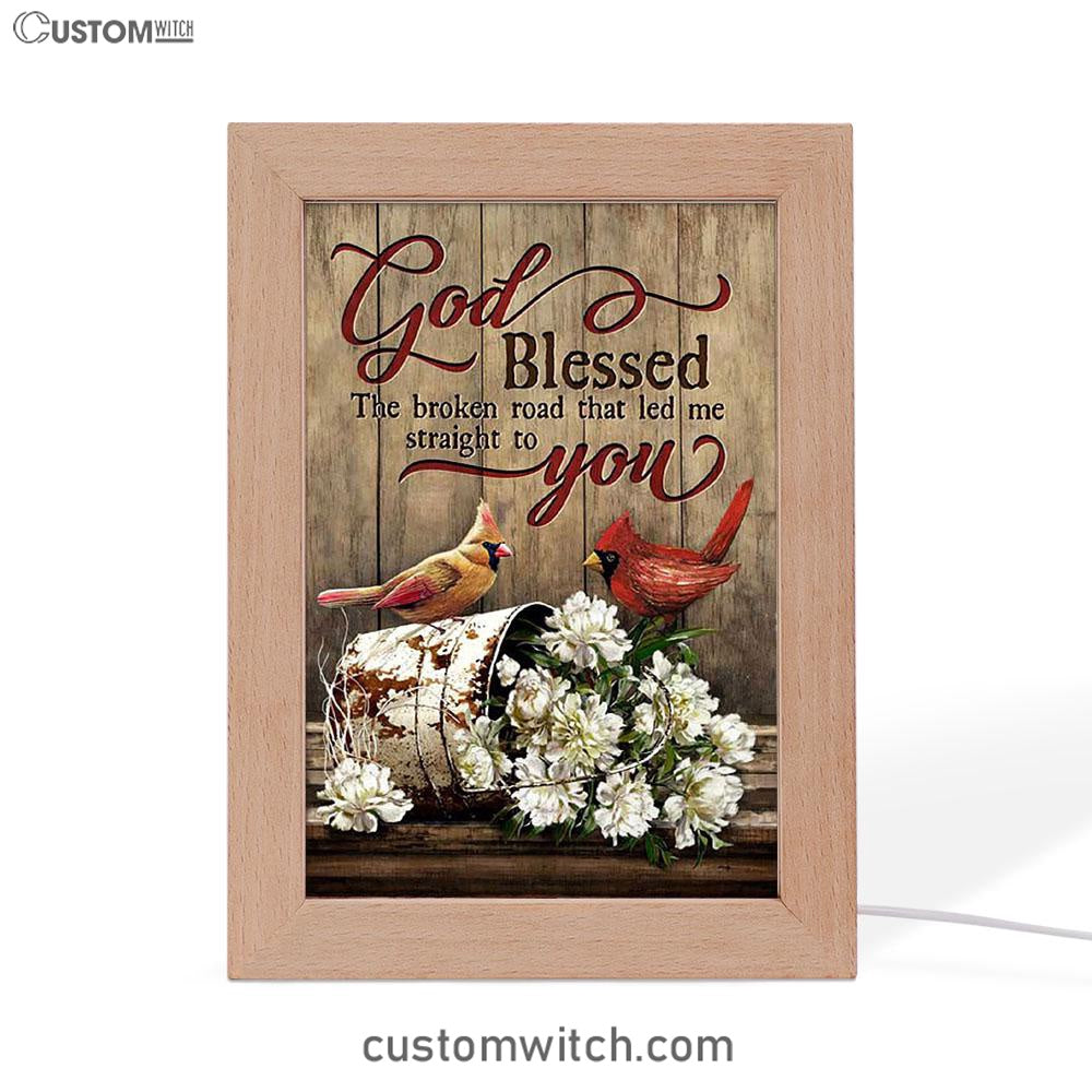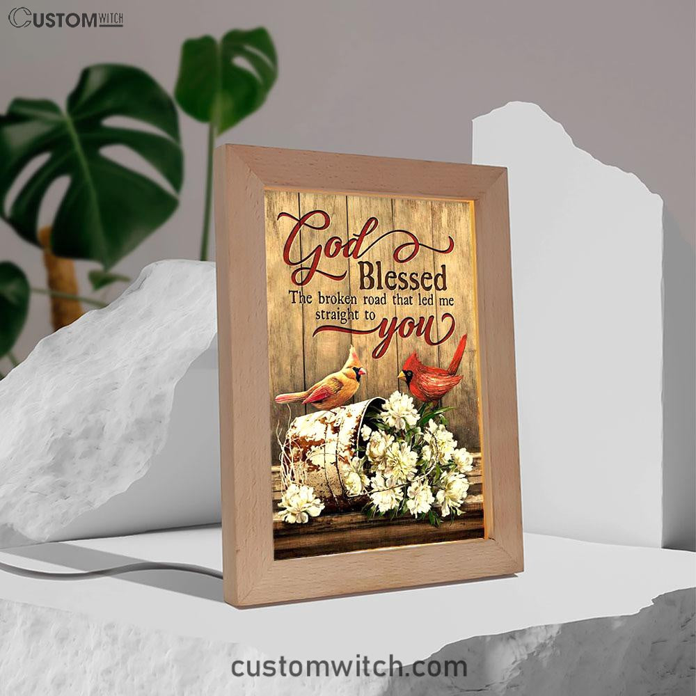 God Blessed The Broken Road Lovely Cardinal Frame Lamp Art - Bible Verse Art - Christian Inspirational Decor
