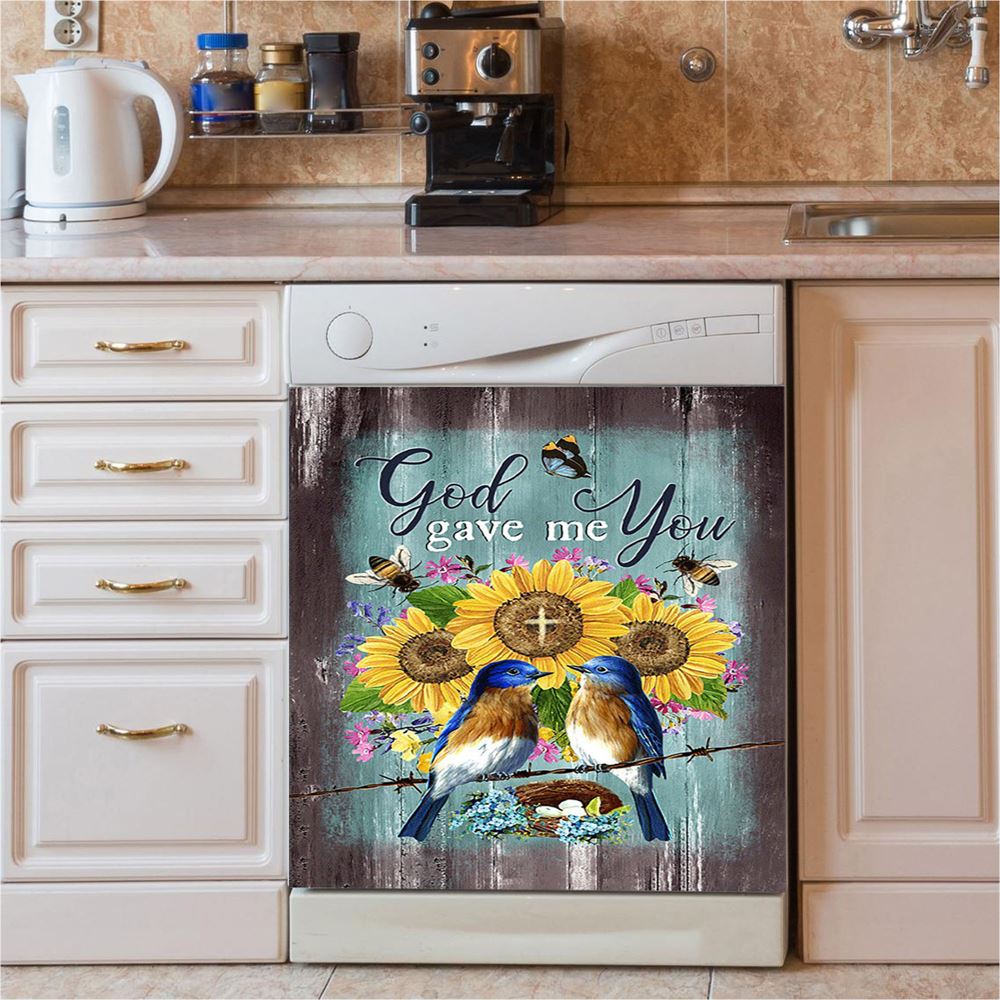God Gave Me You Bird Nest Sunflower Butterfly Dishwasher Cover, Bible Verse Dishwasher Stickers, Christian Inspirational Kitchen Decor
