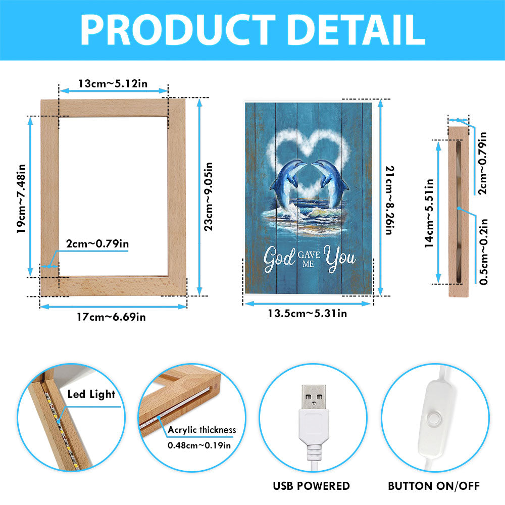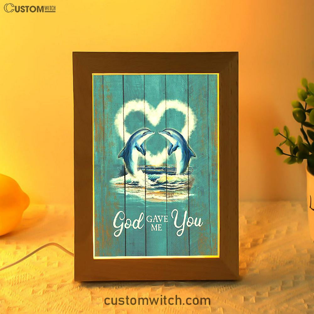 God Gave Me You Dolphin Blue Ocean Frame Lamp Art - Bible Verse Art - Christian Inspirational Decor