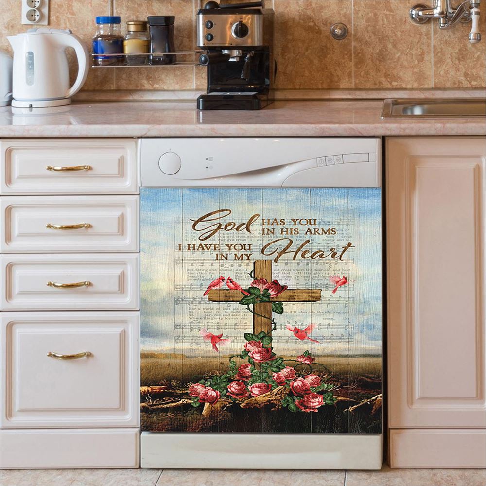 God Has You In His Arms Dishwasher Cover, Red Rose Cardinal Wooden Cross Dishwasher Stickers, Bible Verse Kitchen Decor