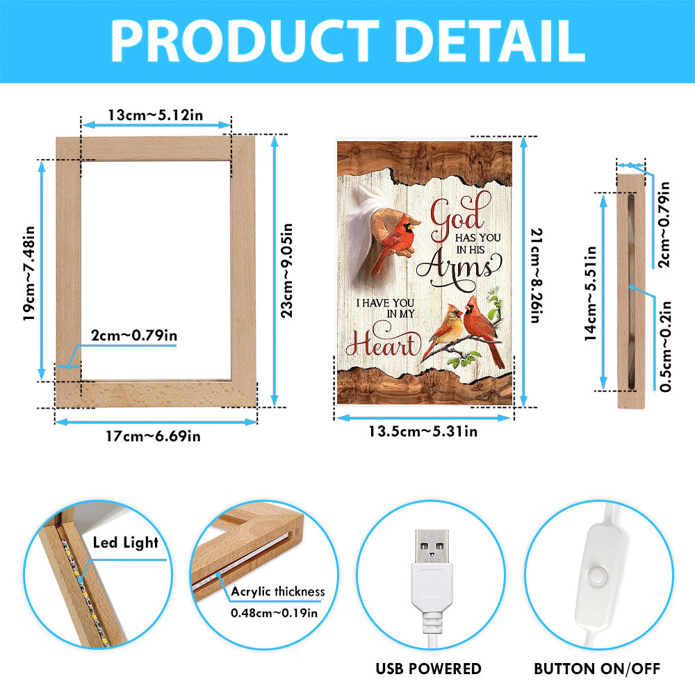 God Has You In His Arms Frame Lamp - Jesus Hand Red Cardinal Frame Lamp - Christian Art - Religious Home Decor