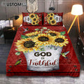 God Is Faithful Sunflower Hummingbird Quilt Bedding Set Bedroom - Bible Verse Quilt Bedding Set Art - Christian Home Decor
