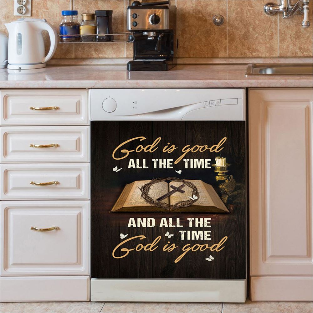 God Is Good All The Time Bible Crown Of Thorn Cross Dishwasher Cover, Christian Dishwasher Stickers, Bible Verse Kitchen Decor