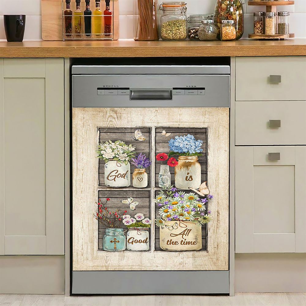 God Is Good All The Time Flower Pretty Butterfly Dishwasher Cover, Bible Verse Dishwasher Stickers, Christian Inspirational Kitchen Decor