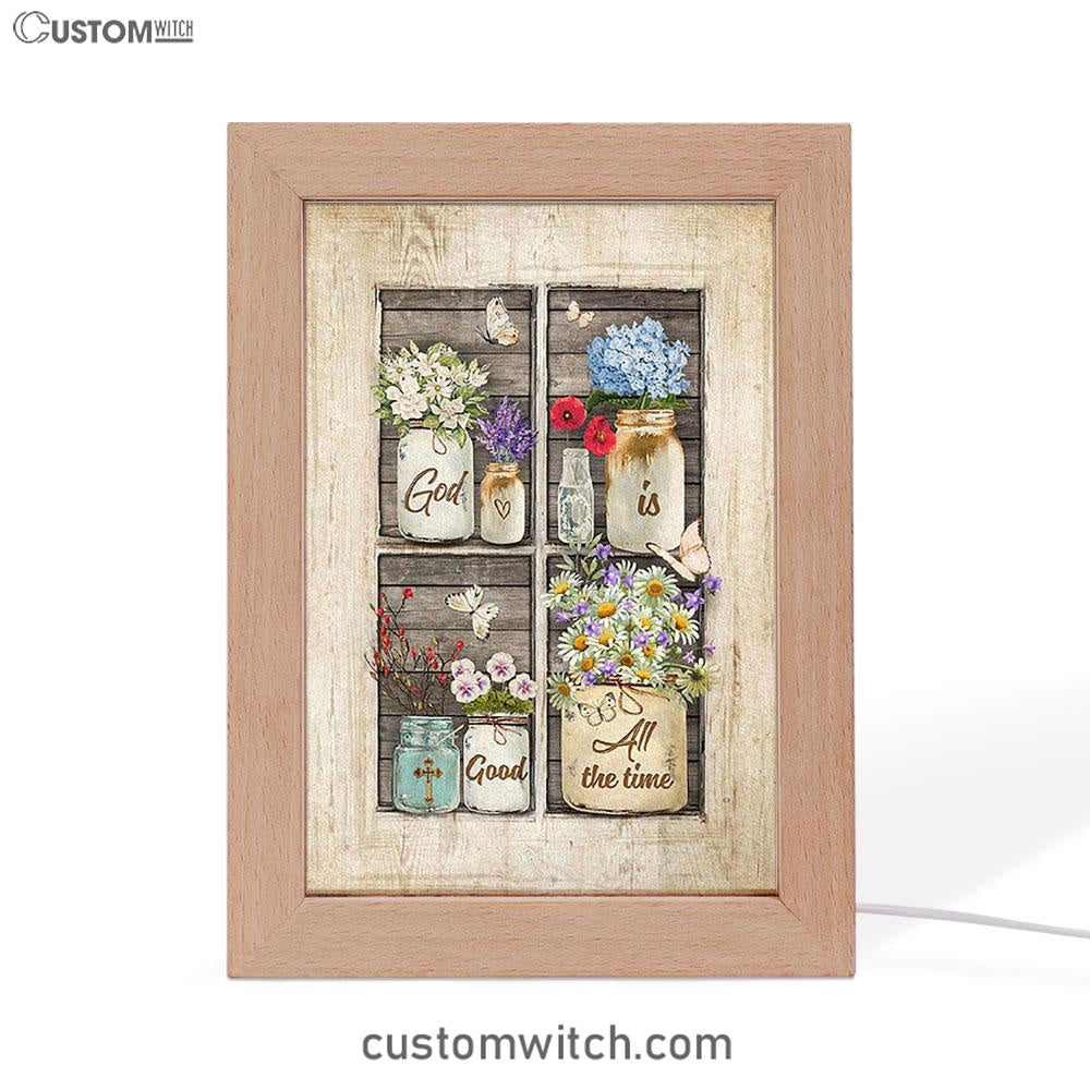 God Is Good All The Time Flower Pretty Butterfly Frame Lamp Art - Bible Verse Art - Christian Inspirational Decor