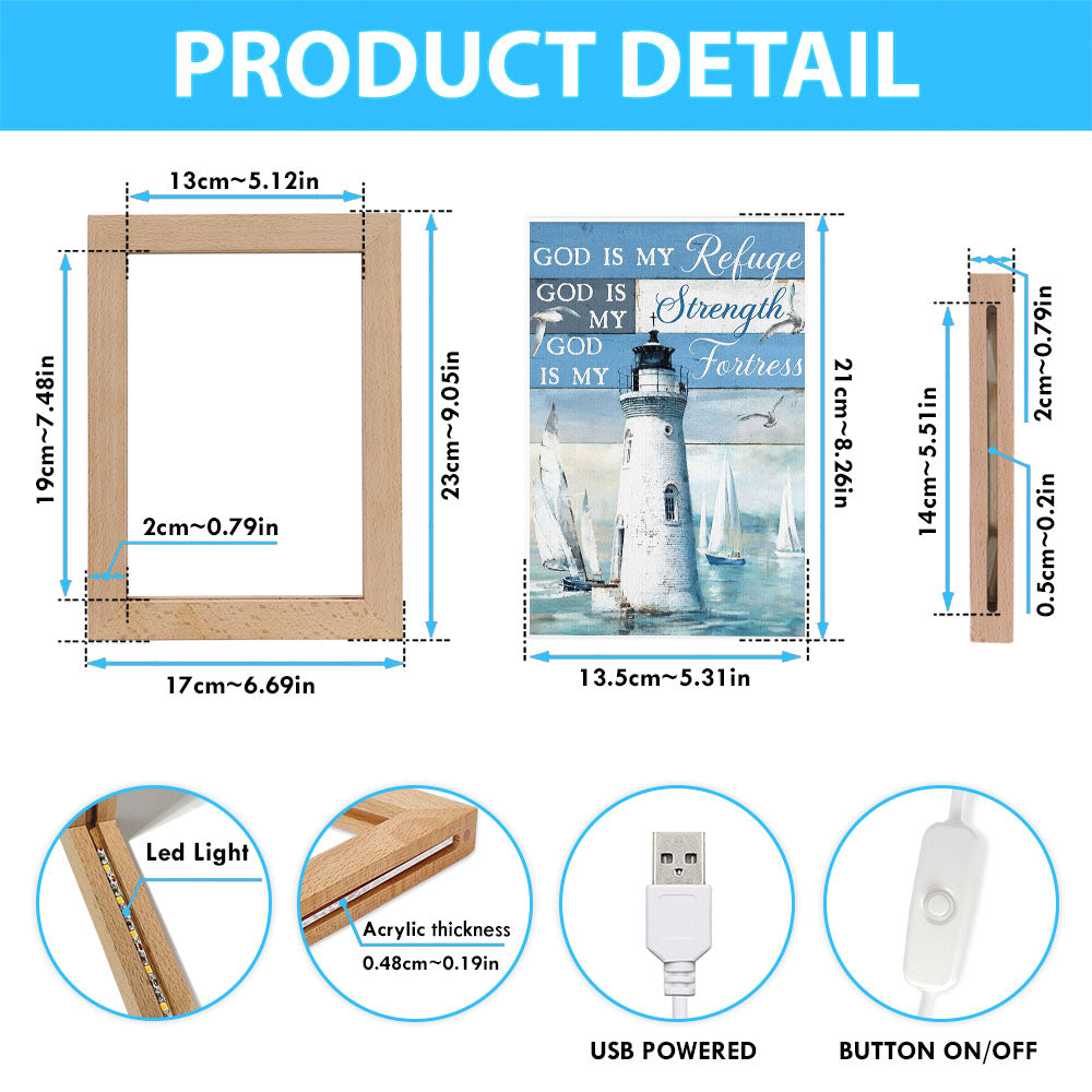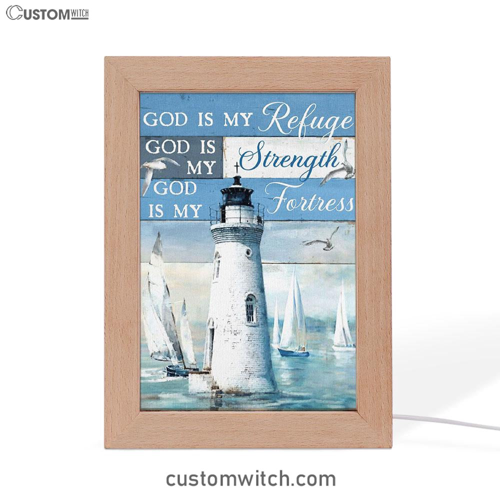 God Is My Refuge God Is My Strength God Is My Fortress Lighthouse Frame Lamp Art - Christian Art Decor - Religious Gifts Night Light