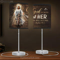 God Is With Her Table Lamp - Jesus And Warrior Dove Table Lamp Prints - Religious Table Lamp Art - Christian Home Decor