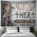 God Is With Her Tapestry - Woman Warrior And Lion Of Judah Tapestry Art - Christian Wall Art - Religious Wall Decor