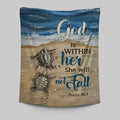 God Is Within Her Sand Beach Sea Turtle Tapestry Wall Art - Christian Tapestries Prints - Bible Verse Tapestry Art