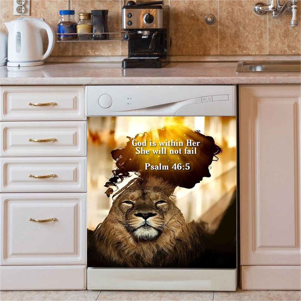 God Is Within Her She Will Not Fail Lion Dishwasher Cover, Lion Dishwasher Stickers, Christian Inspirational Kitchen Decor