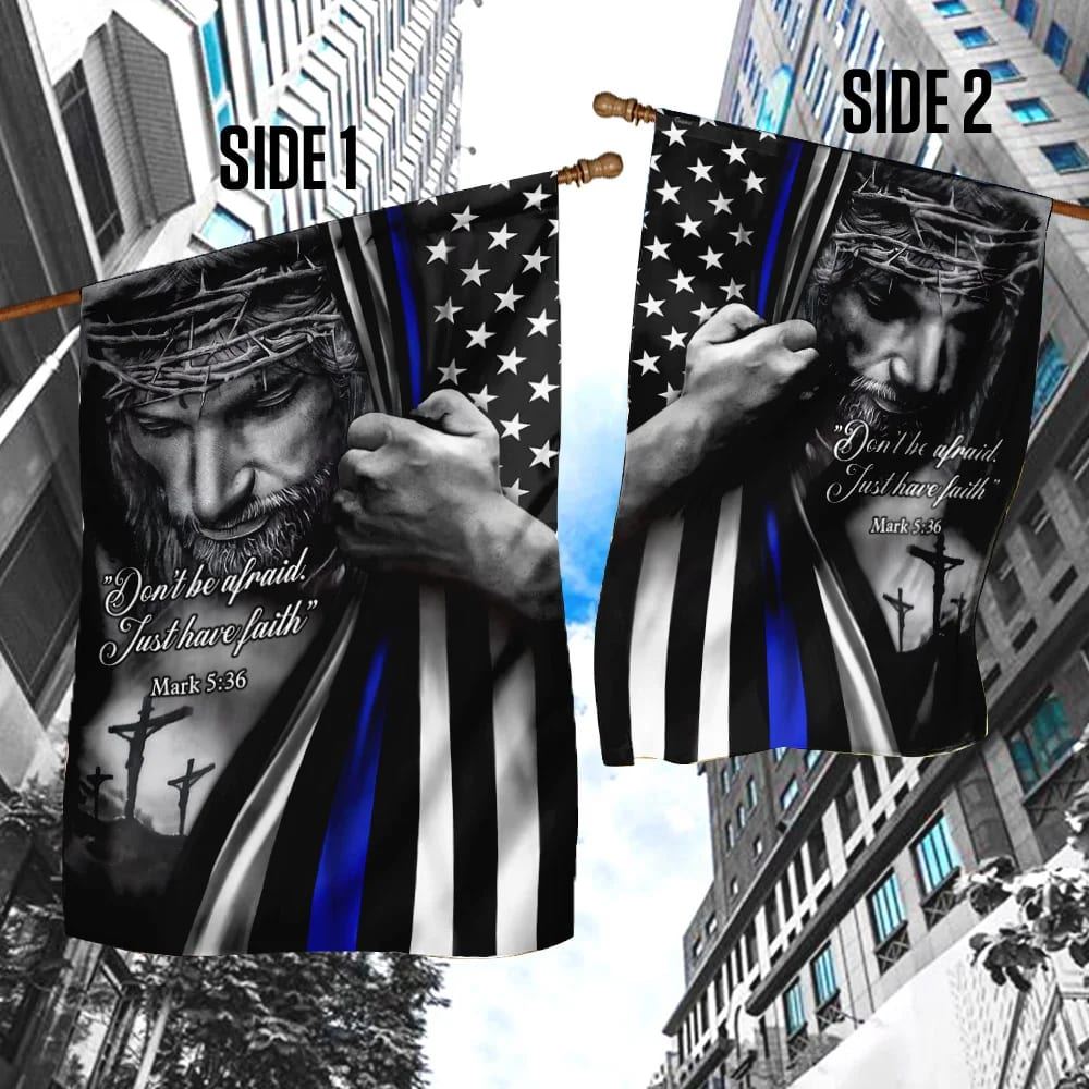God Jesus Thin Blue Lives Law Enforcement House Flags, Christian Flag, Scripture Flag, Garden Banner