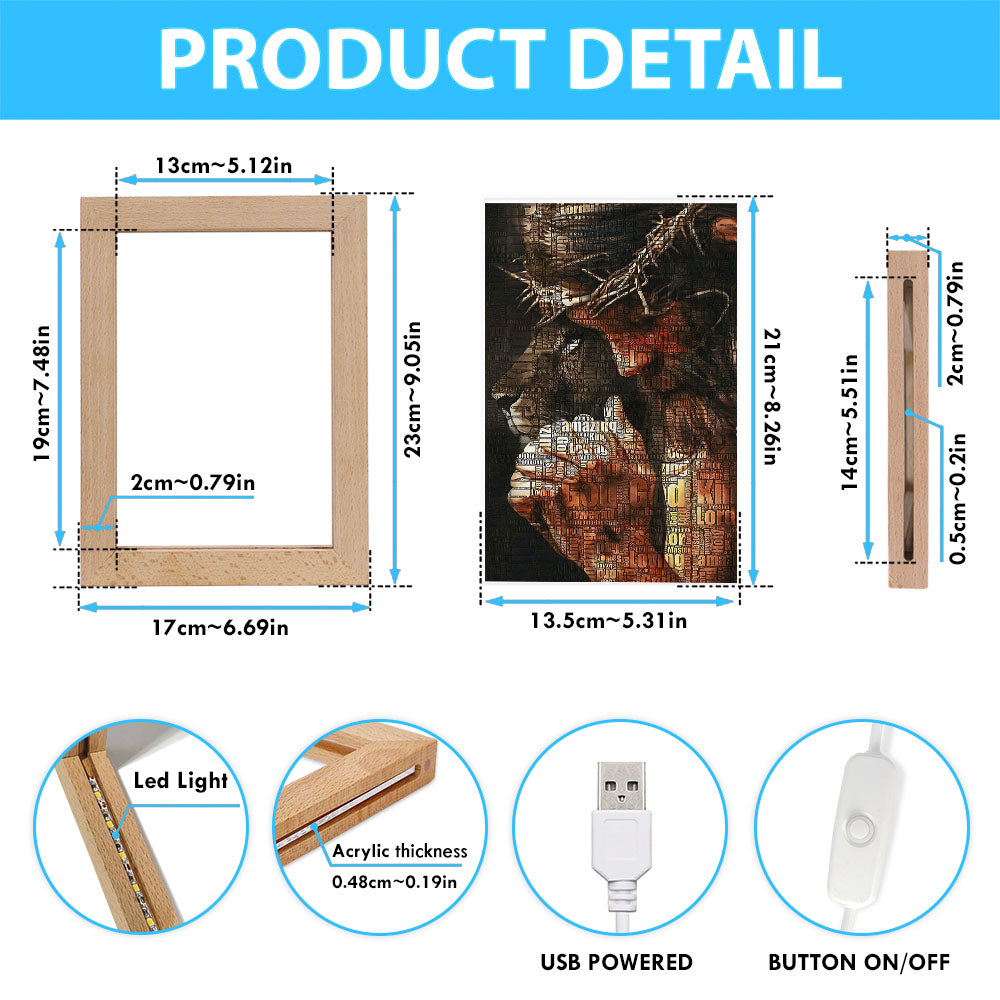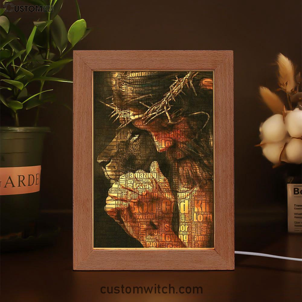 God King Loving Jesus & Lion Frame Lamp Art - Jesus Frame Lamp Pictures - Christian Night Light
