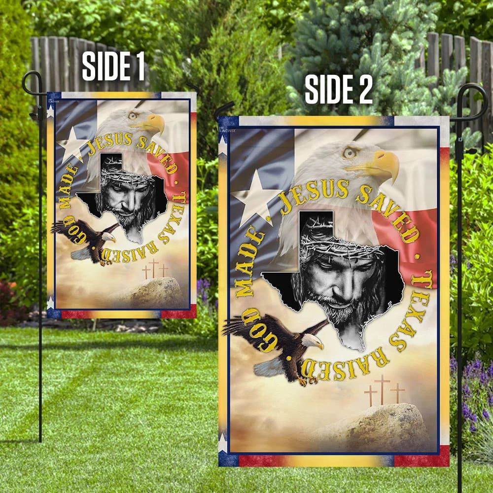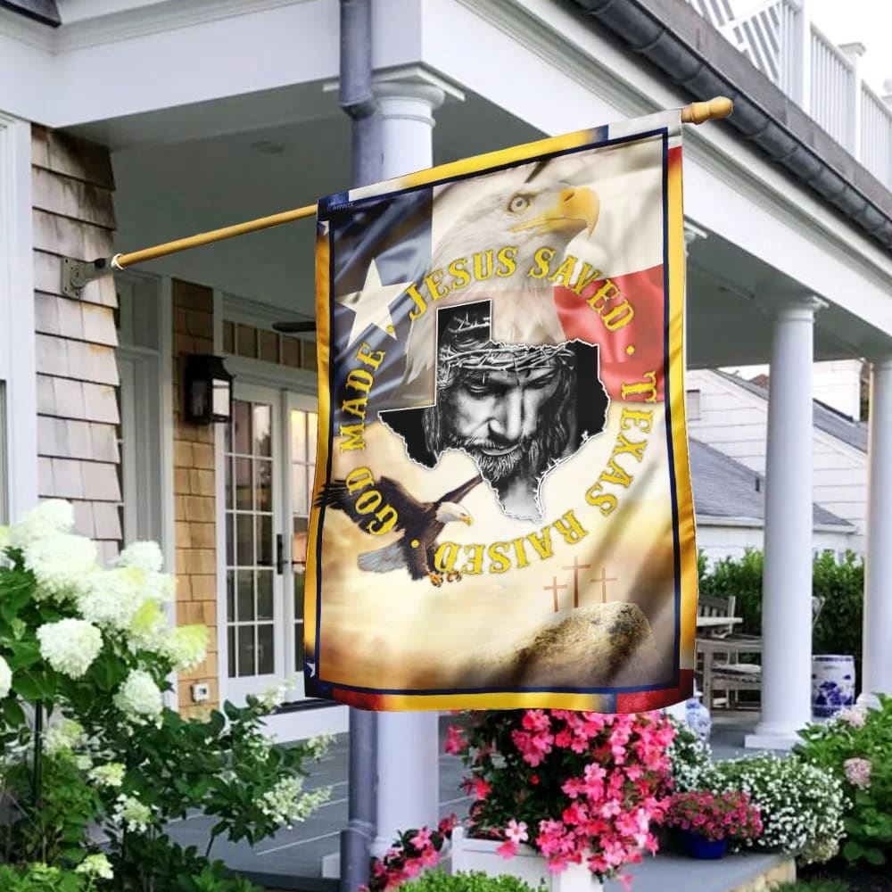 God Made Jesus Saved Texas Raised Flag, Outdoor Christian House Flag, Christian Flag, Scripture Flag, Garden Banner