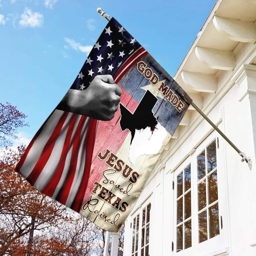 God Made Jesus Saved Texas Raised Garden Flag, Christian Flag, Scripture Flag, Garden Banner