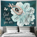 God Says You Are Ballerina Ballet Flower Dress Butterfly Tapestry Wall Art - Bible Verse Tapestry - Religious Tapestry Wall Hanging