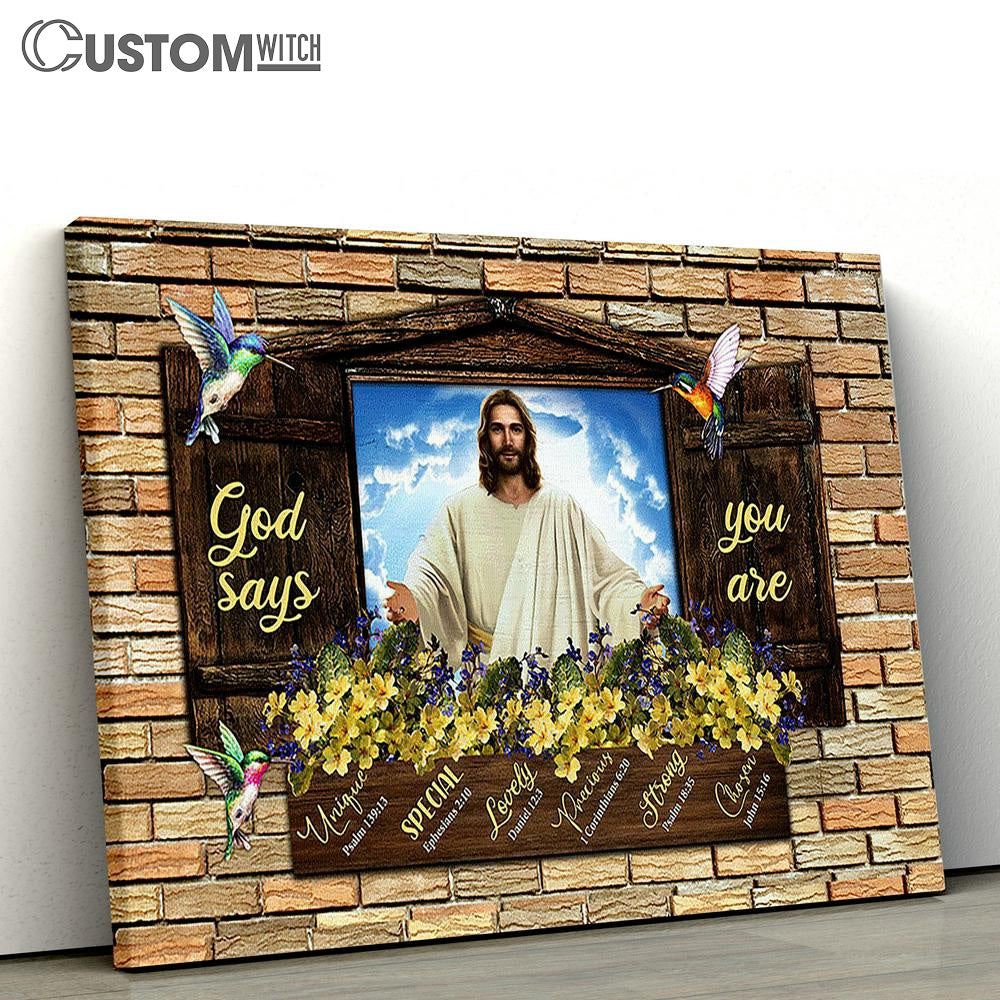 God Says You Are Canvas - Jesus Christ Hummingbird Yellow Flower Large Canvas Art - Christian Wall Decor - Religious Wall Decor