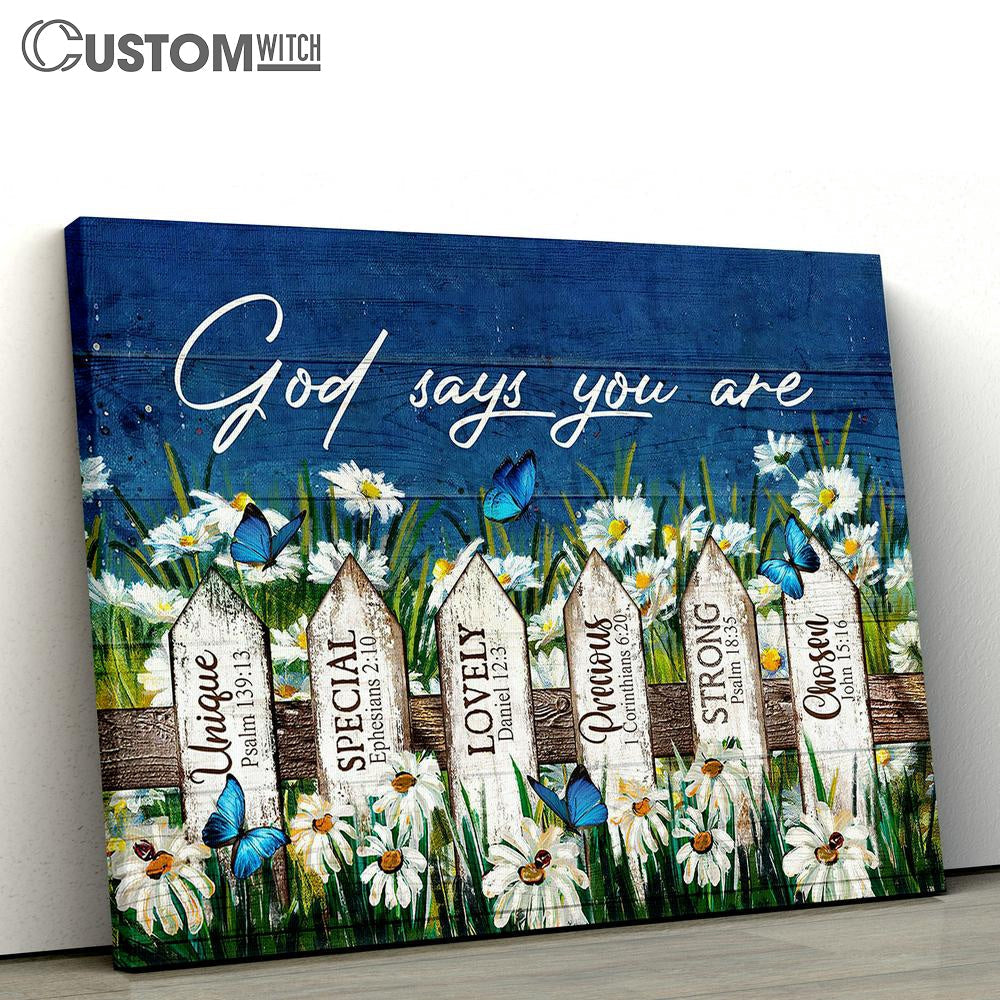 God Says You Are Daisy Garden Butterfly Canvas Wall Art - Bible Verse Canvas - Religious Prints