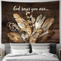 God says you are Feather Tapestry Wall Art - Bible Verse Tapestry - Religious Tapestry Wall Hanging