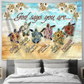 God Says You Are Flower On The Beach Sea Turtles Tapestry Painting - Christian Wall Art - Gifts For Turtle Lovers