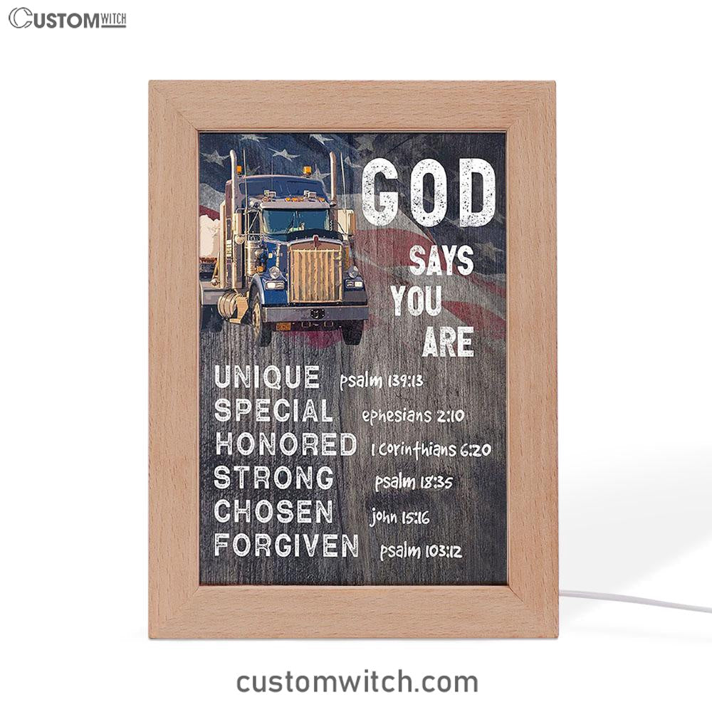 God Says You Are Frame Lamp - Christian Gifts For Trucker Drivers - Christian Night Light Decor