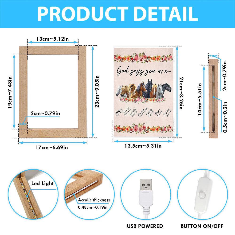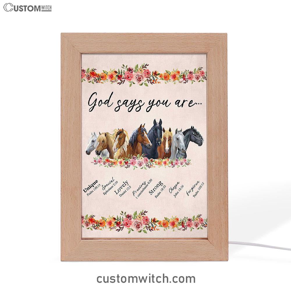 God Says You Are Horse Frame Lamp Art - Christian Frame Lamp - Religious Gifts Night Light