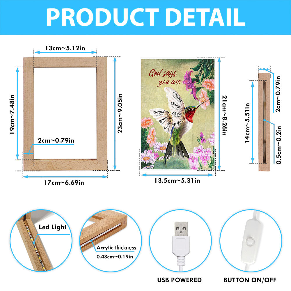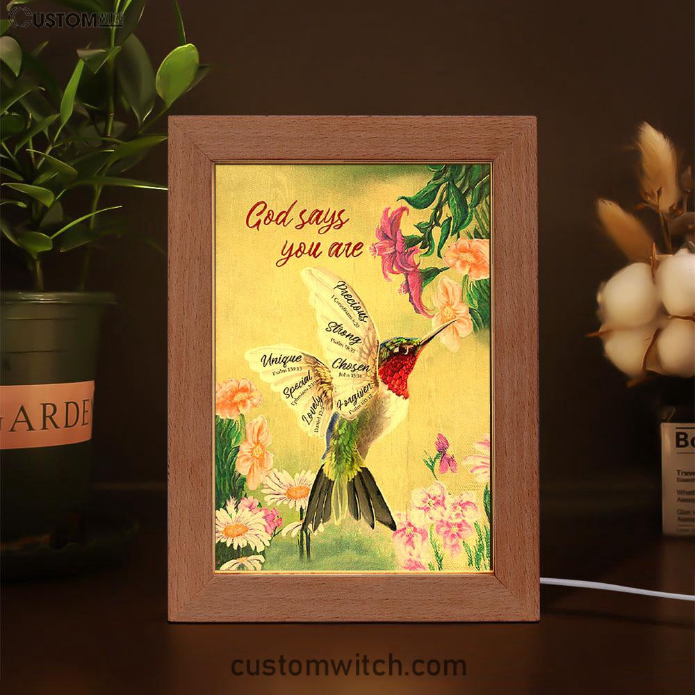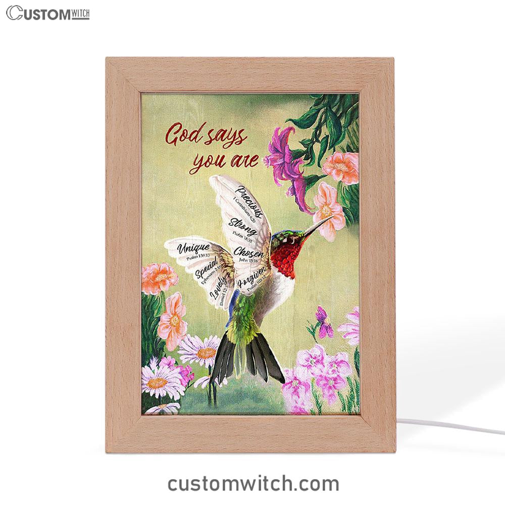 God Says You Are Hummingbird Frame Lamp Art - Bible Verse Art - Christian Inspirational Decor