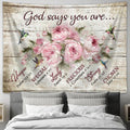 God Says You Are Hummingbird Pink Flower Tapestry Wall Art - Bible Verse Tapestry - Religious Tapestry Wall Hanging