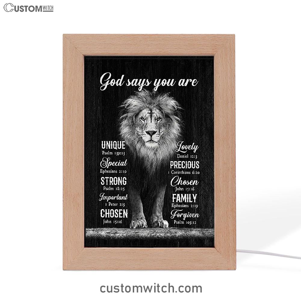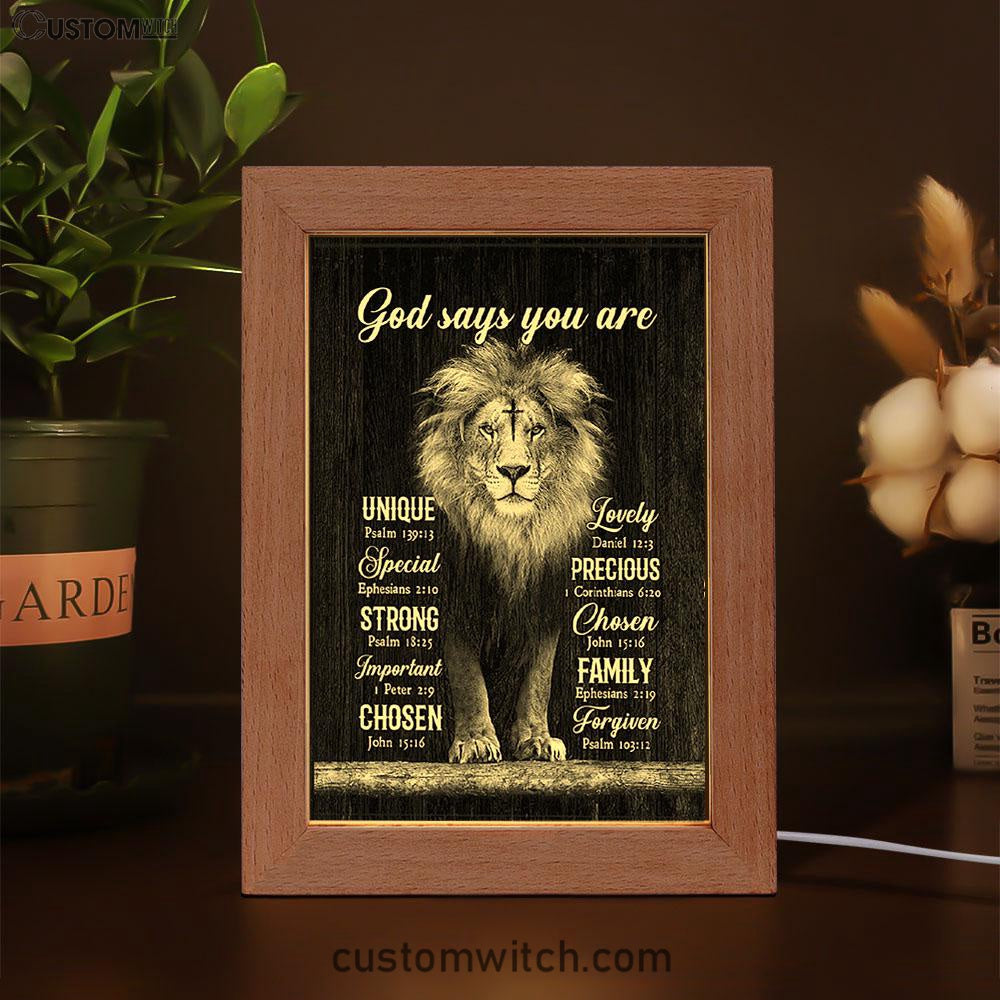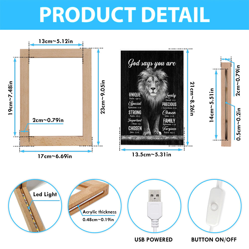 God Says You Are Lion Of Judah Cross Frame Lamp Art - Bible Verse Art - Christian Inspirational Decor