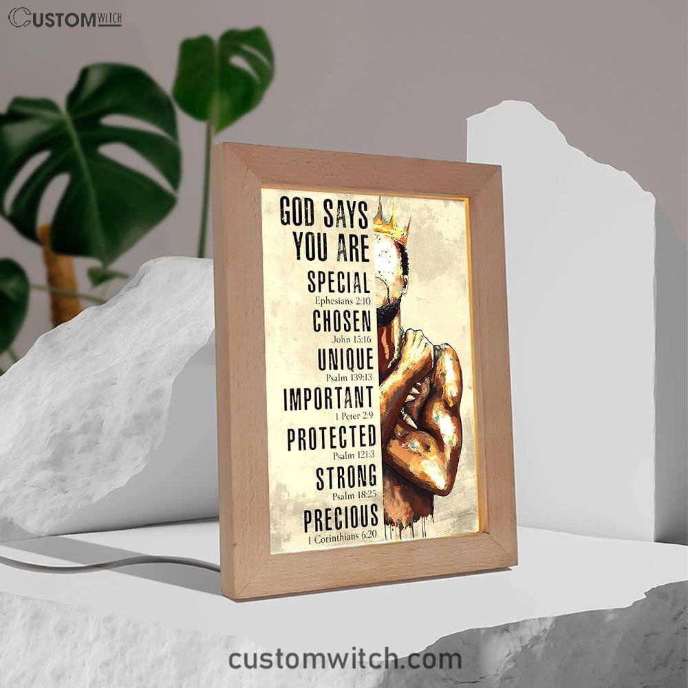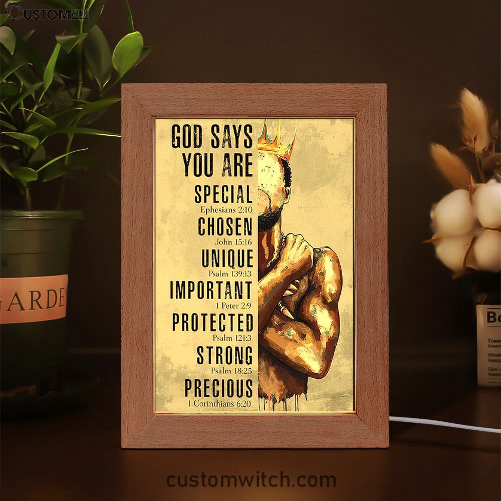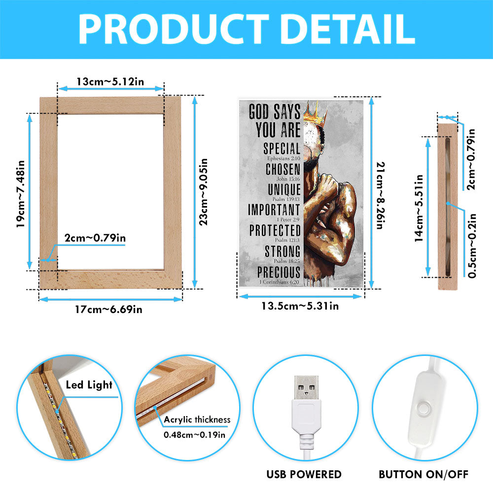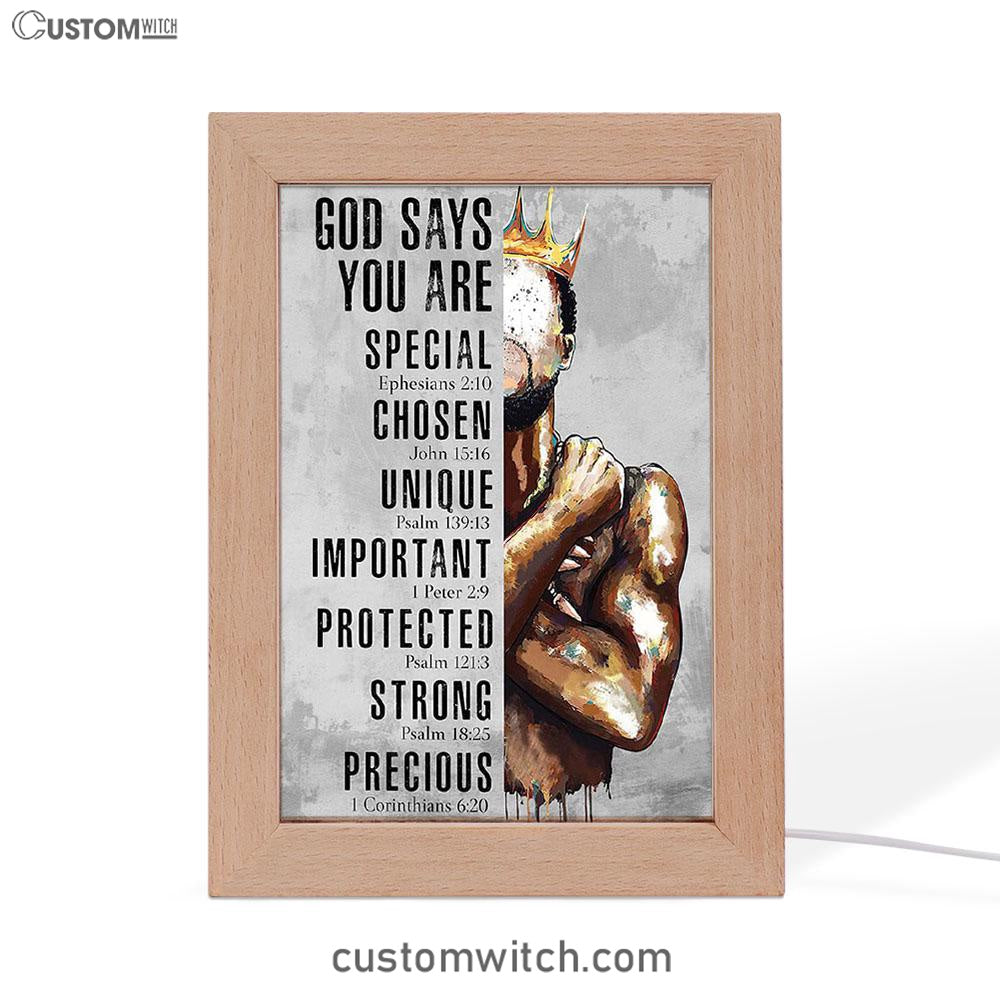 God Says You Are Motivational Black Frame Lamp Art - African American Art