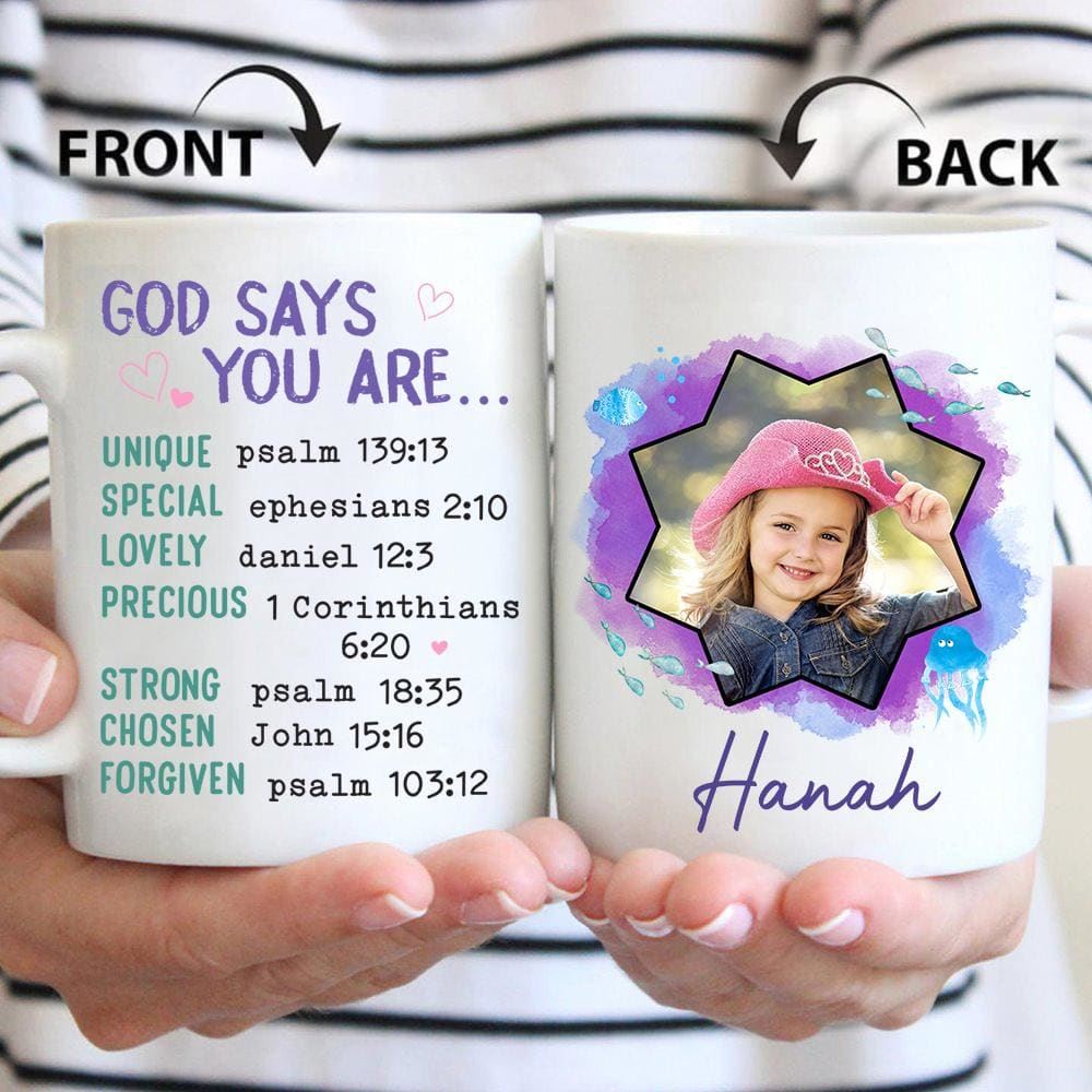 God Says You Are Personalized Photo Coffee Mug, Christian Mug, Bible Mug, Faith Gift, Encouragement Gift
