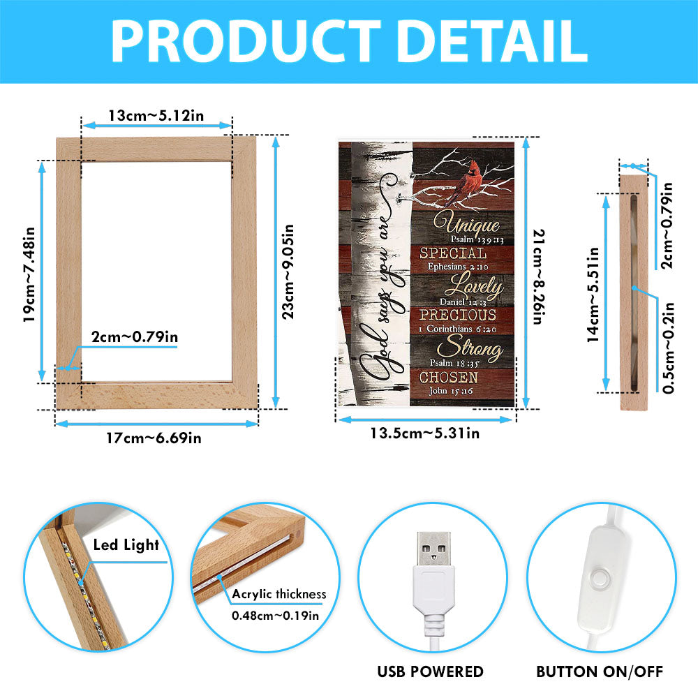 God Says You Are Red Cardinal Frame Lamp Art - Bible Verse Wooden Lamp - Inspirational Art - Christian Home Decor