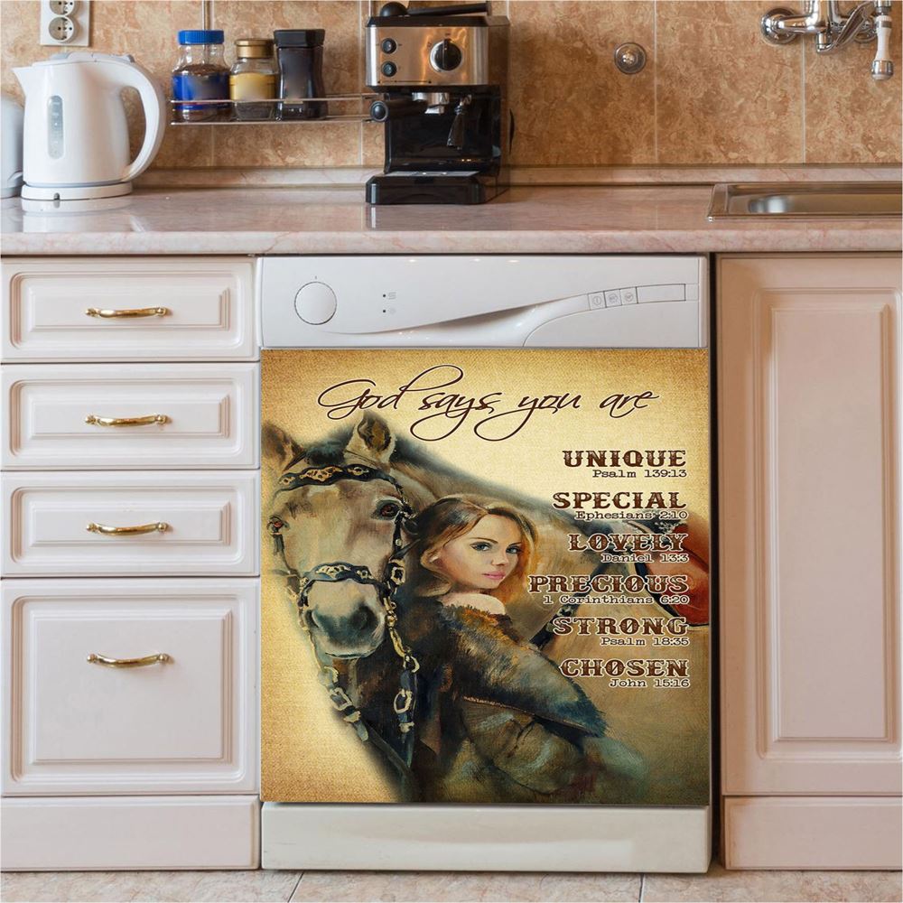 God Says You Are Sunflower Hummingbird Dishwasher Cover, Christian Dishwasher Stickers, Bible Verse Kitchen Decor
