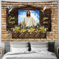God Says You Are Tapestry - Jesus Christ Hummingbird Yellow Flower Large Tapestry Art - Christian Wall Decor - Religious Wall Decor