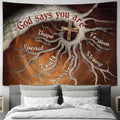 God Says You Are Tree Roots Wooden Cross Large Tapestry Art - Christian Wall Decor - Religious Wall Decor