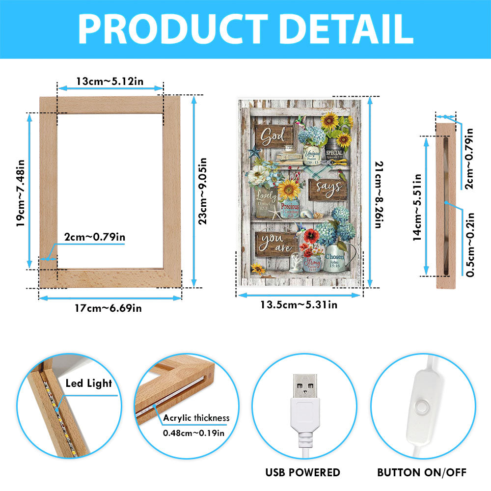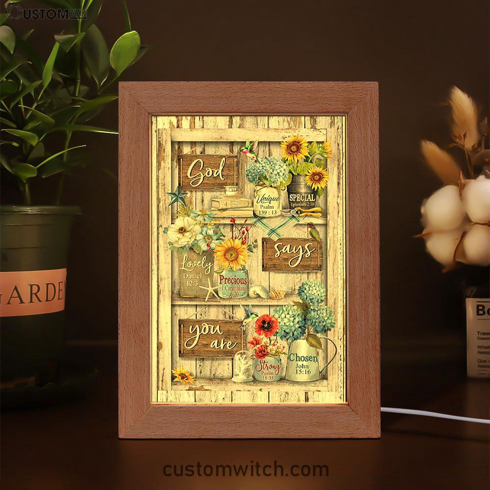 God Says You Are Unique Hummingbird Red Poppy Frame Lamp Art - Bible Verse Art - Christian Inspirational Decor