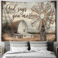 God Says You Are Windmill Farm Rustic Barn Large Tapestry Art - Christian Wall Art Home Decor - Religious Tapestry Prints