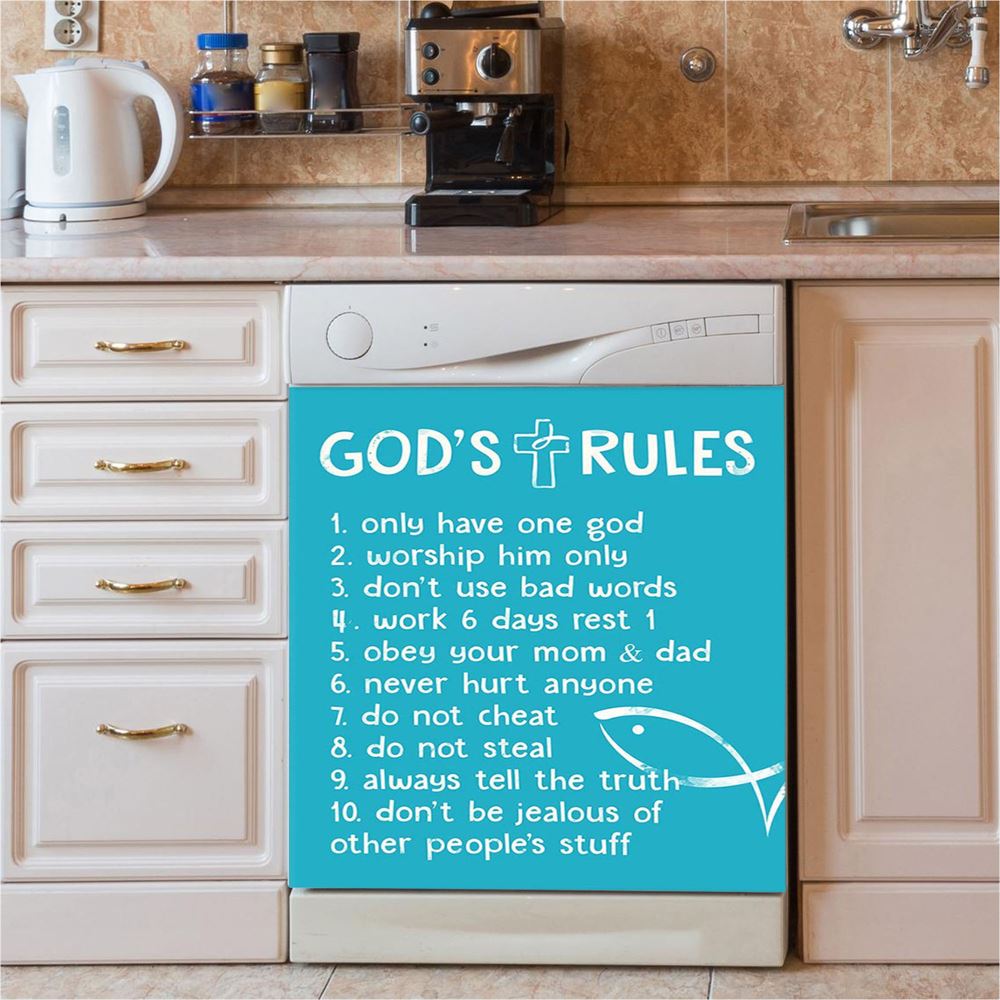 God's Rules Dishwasher Cover, Christian Gift For Child, Christian Kitchen Decor