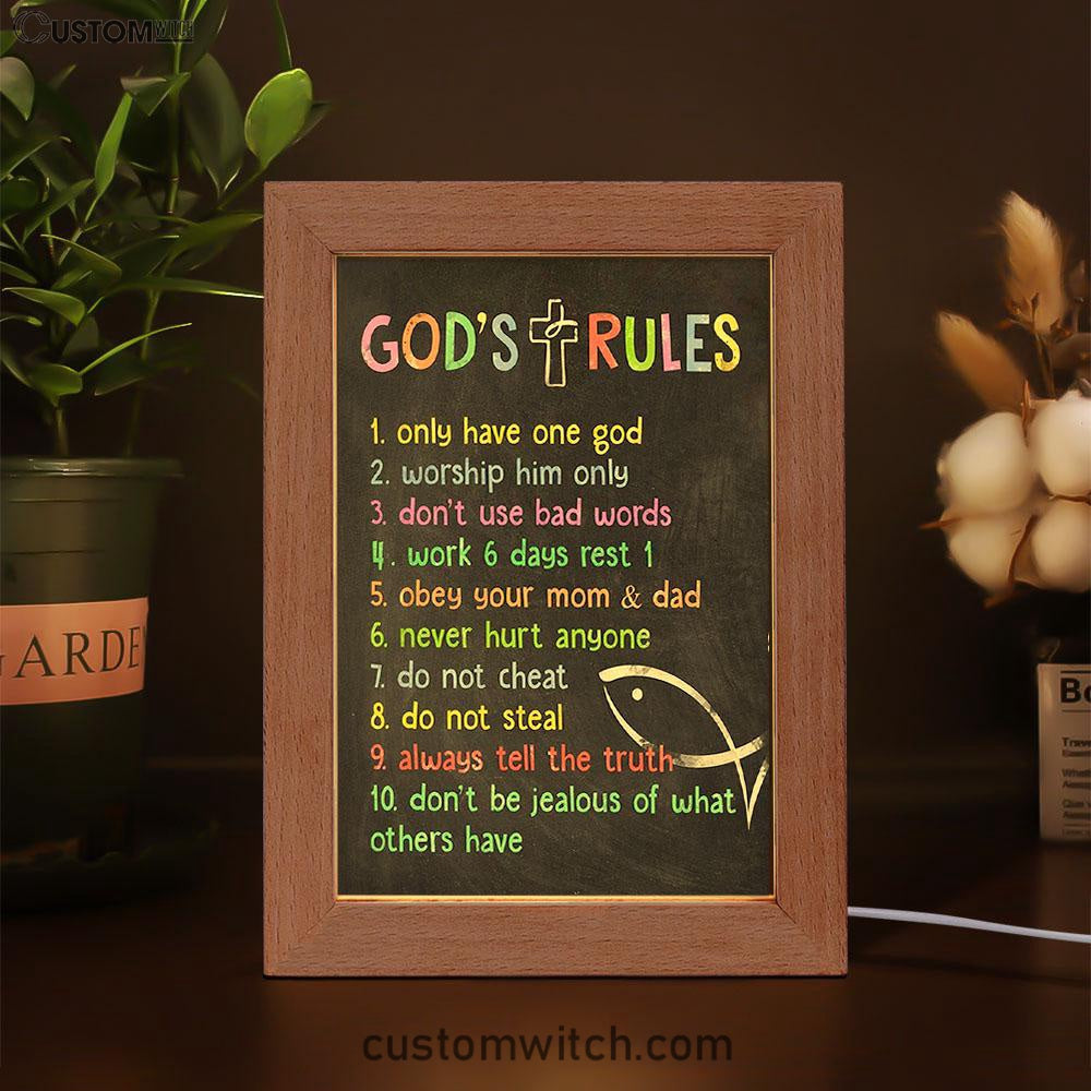 Gods Rules Frame Lamp Prints - Decor For Kids Boys Girls Bedroom Toddler Room Or Nursery