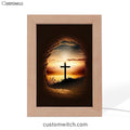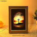 Good Friday Cross Golden Sunset Sky Frame Lamp Prints - Religious Frame Lamp Art - Christian Decor