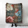 Grateful Thankful Blessed Beautiful Camellia Northern Cardinal Woven Throw Blanket - Christian Throw Blanket Decor - Religious Woven Blanket Prints
