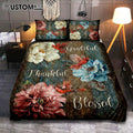 Grateful Thankful Blessed Camellia Northern Cardinal Quilt Bedding Set Bedroom - Christian Quilt Bedding Set Prints - Bible Verse Quilt Bedding Set Art