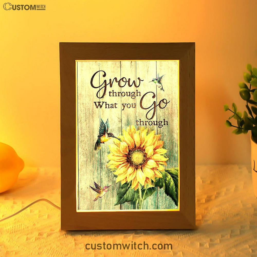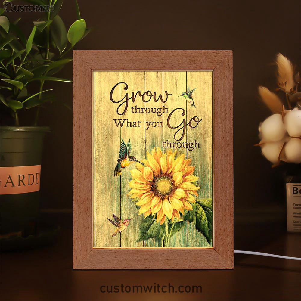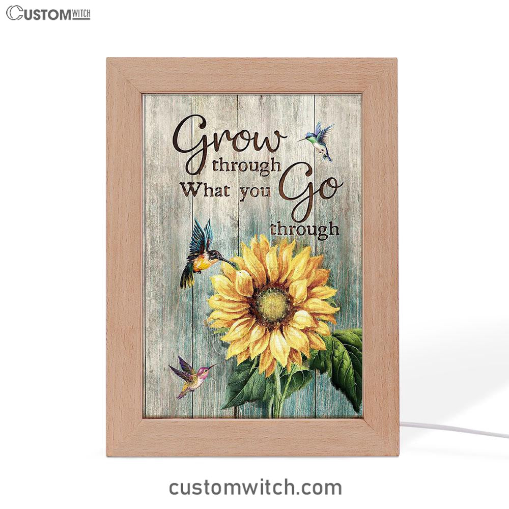 Grow Through What You Go Through Sunflower Hummingbird Frame Lamp Art - Christian Art - Bible Verse Art - Religious Home Decor