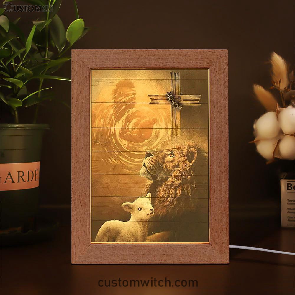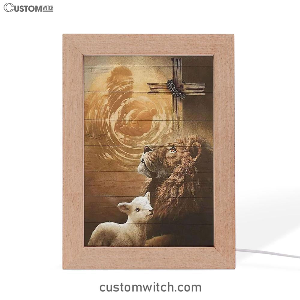 Hand Of God Lion Lamb Cross Frame Lamp Prints - Lion Frame Lamp Art - Christian Inspirational Frame Lamp