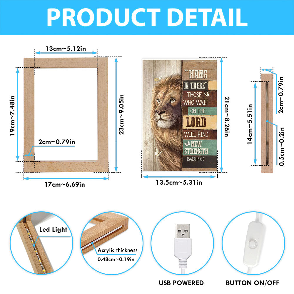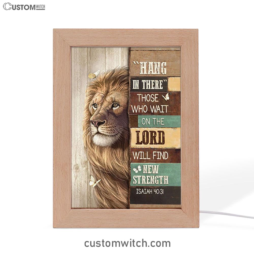 Hang In There Lion White Butterfly Frame Lamp Art - Bible Verse Art - Christian Inspirational Decor