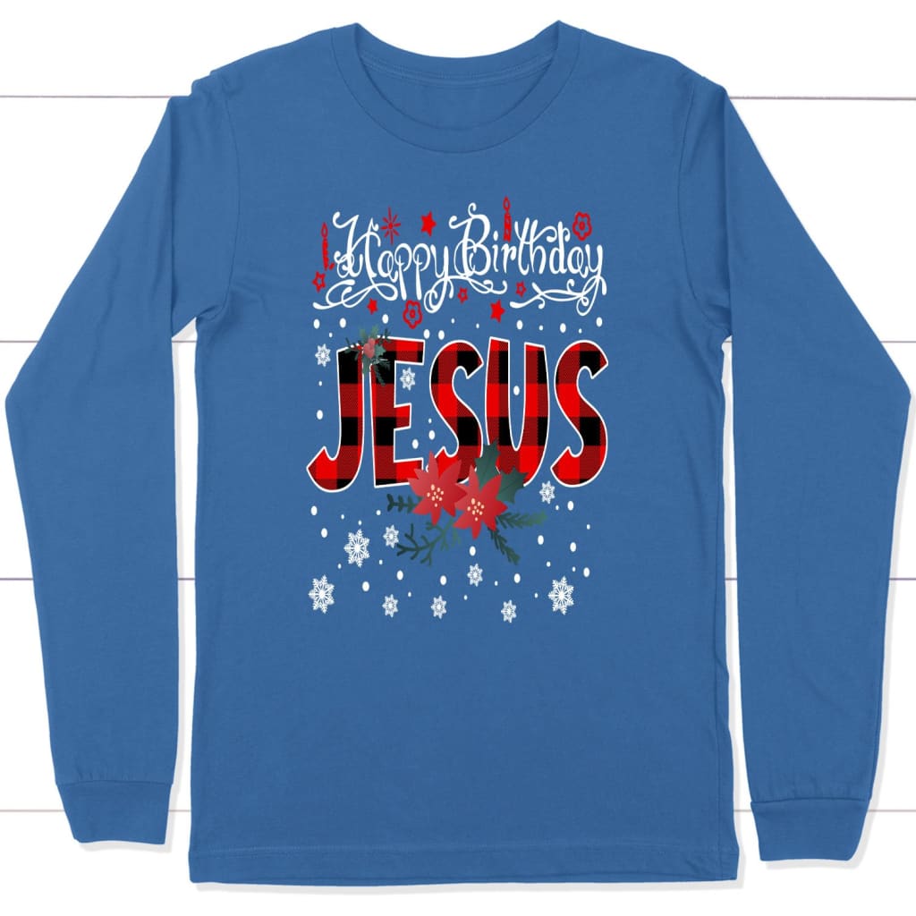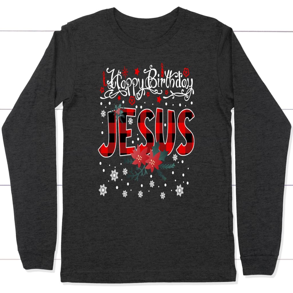 Happy Birthday Jesus, Buffalo Plaid, Christmas Long Sleeve Shirt