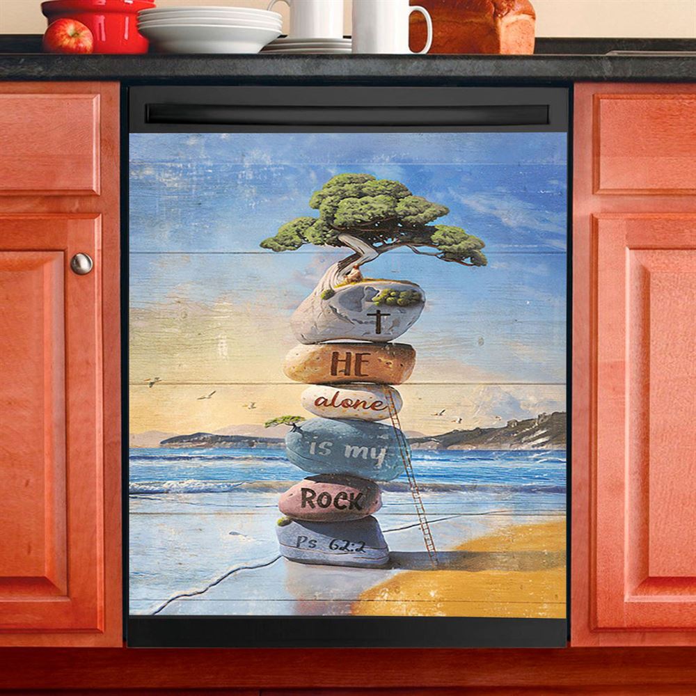 He Alone Is My Rock Rock Cairn Bonsai Dishwasher Cover, Bible Verse Dishwasher Stickers, Christian Inspirational Kitchen Decor